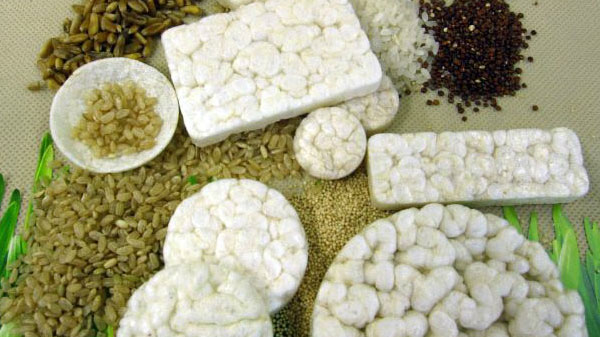 Produce galletas de arroz con arroz o granos naturales y crudos